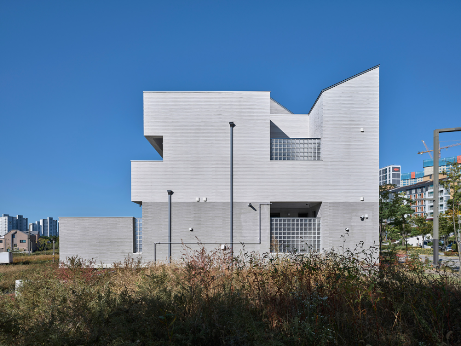 대규모 아파트 단지들이 군집한 신도시의 단독주택 전용지역 지구단위계획 구역, 이런 동네의 지침은 지역에 상관없이 대체로 유사하다. 필지들은 반듯한 형태에 면적은 70~80평 내외, 인접한 도로 폭 6~8미터 내외로 기본적인 구획 체계가 균일하다. 그런 이유로 작은 필지들이 이웃하여 지침을 수세적으로 극복한 유사한 형상의 집들이 지어진다. 주차장 2면 확보, 인접경계선 이격거리, 일조권 사선을 적용하다보면 필지 대부분은 작은 마당이 조금 남고, 집 본채는 마당을 면해 ㄱ자나 일자형으로 배치된다. 지붕 경사도, 주요 재료, 건물 색감까지 지침에 명시된 현실이니 고민 없이 지침을 따라가다 보면, 처음에 원했던 집과 다른 결과물로 마무리될 수도 있음을 주시하면서 설계를 풀어갔다.