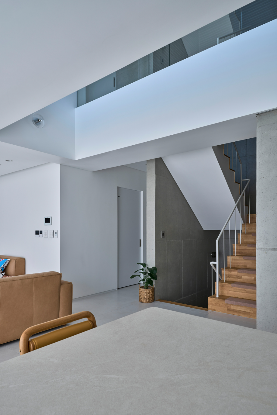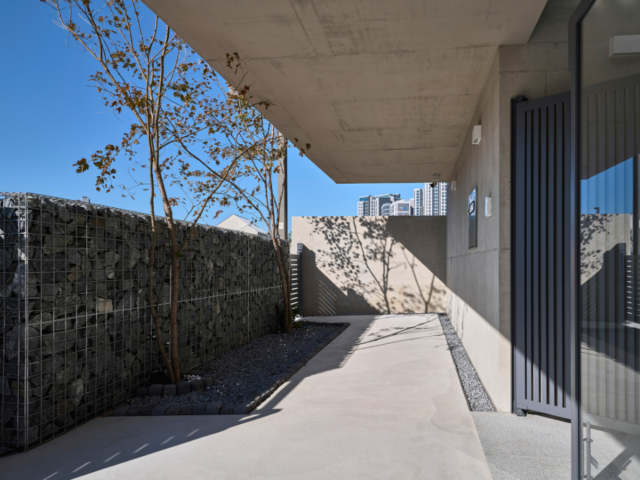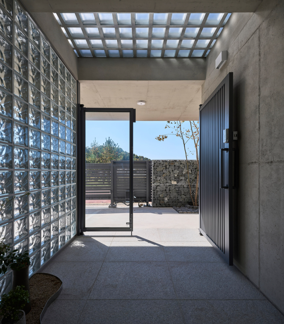 대부분 건축주들이 그러하듯 프라이버시 중요하게 생각하고 외부 시선은 막고 싶다는 가장 기본적 요구사항에서 출발한 집이다. 프라이버시를 해결하자고 좁고 깊은 중정을 만들고 외부로는 성곽을 둘러치듯 집을 감싸는 답답한 ㅁ자 배치는 벗어나고 싶었다. 막을 곳은 확실히 막고 열 곳은 확실히 여는 집, 풍부한 일조량과 시원한 조망을 갖춘 집을 상상하며 설계했다. 감추고 싶은 마음과 드러내고 싶은 마음의 조화랄까... 늘 그렇지만 한 가족의 워너비 주택을 설계한다는 건 그들 마음속에 있는 다양한 모순을 이해하고 풀어내는 과정이다.◼︎