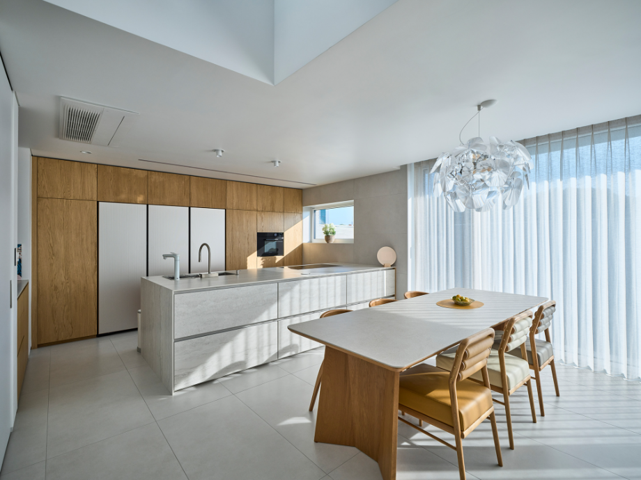 넷째, 거실, 주방은 하나의 큰 공간이 좋습니다. 큰 창문과 조망이 확 트이면 좋겠습니다.