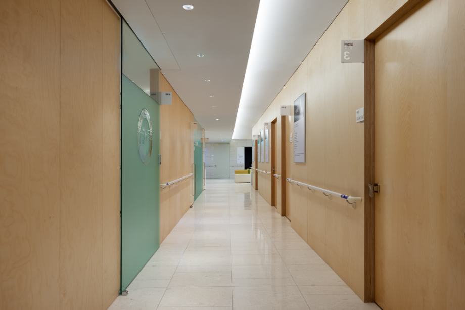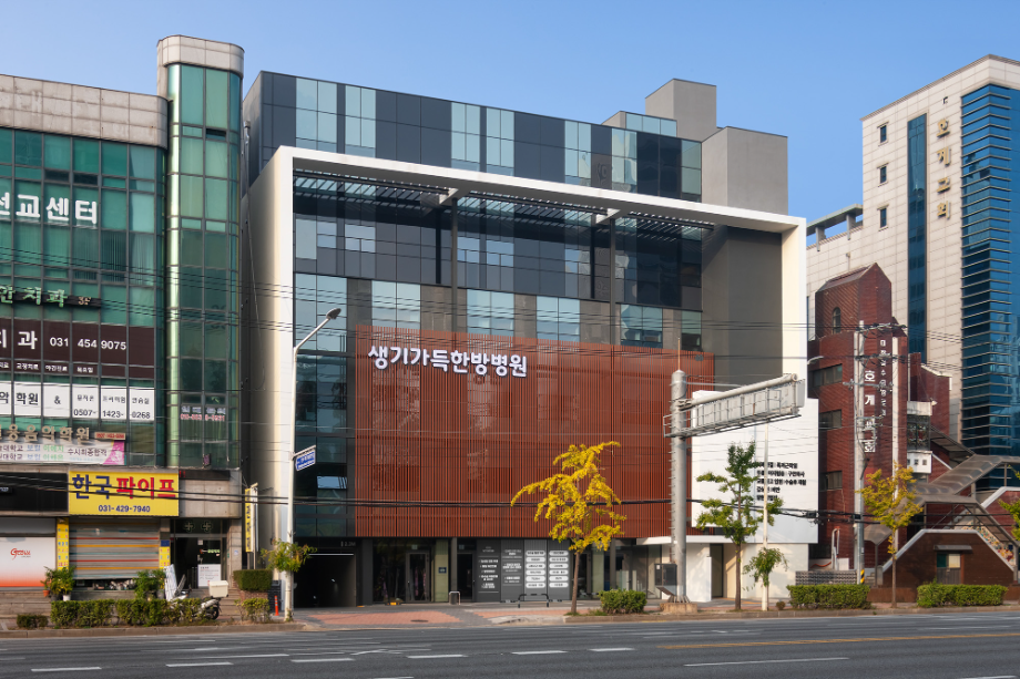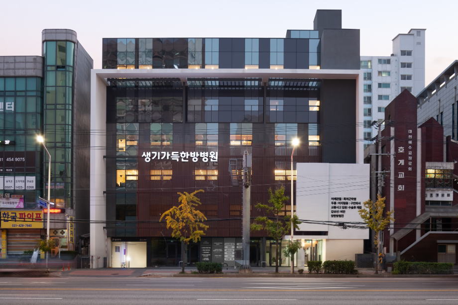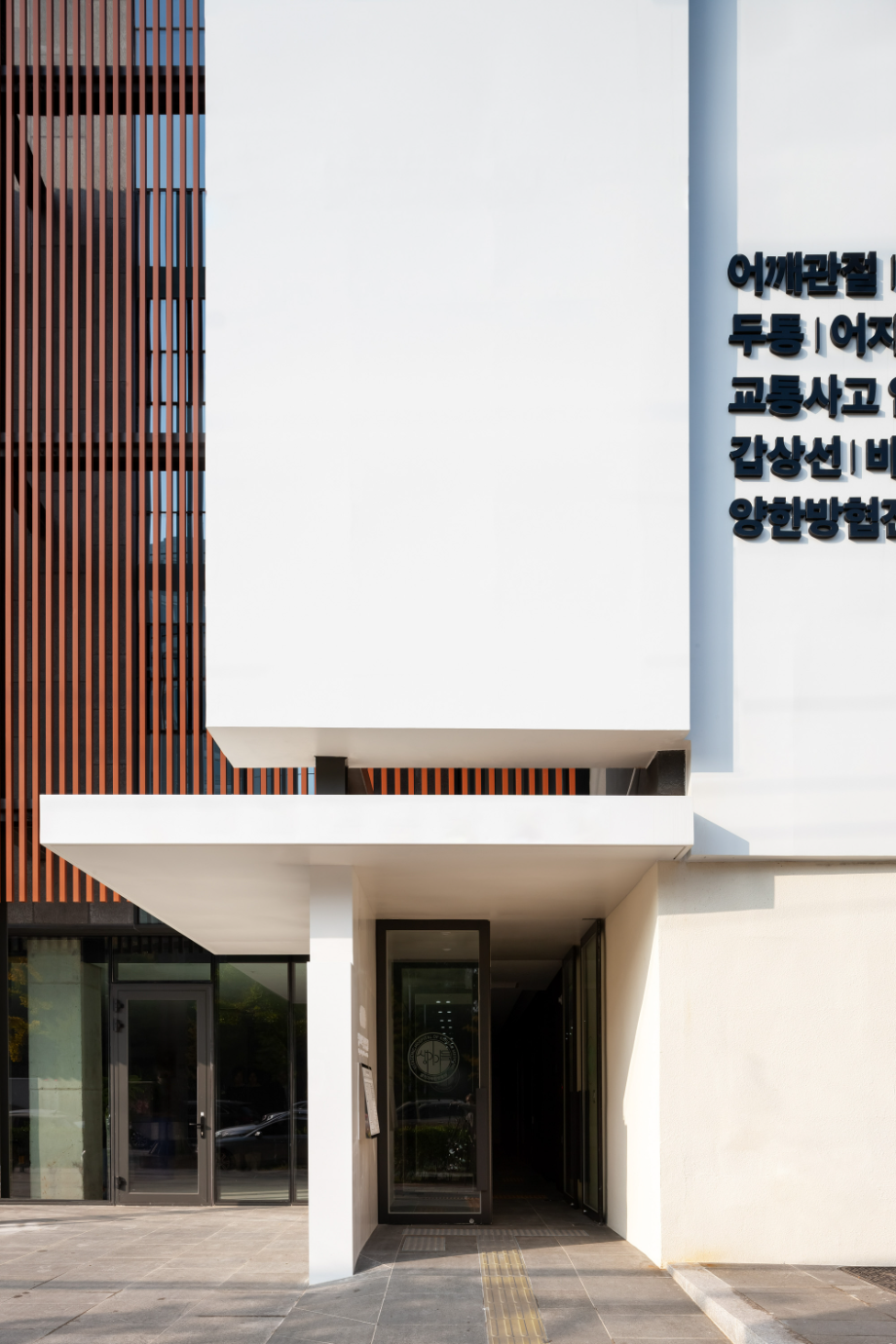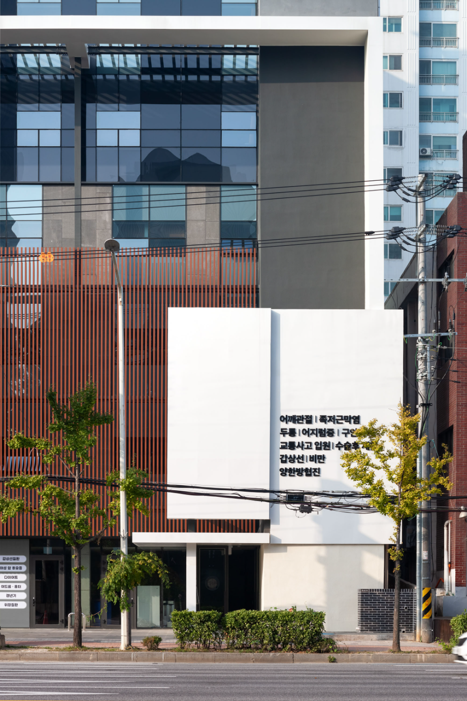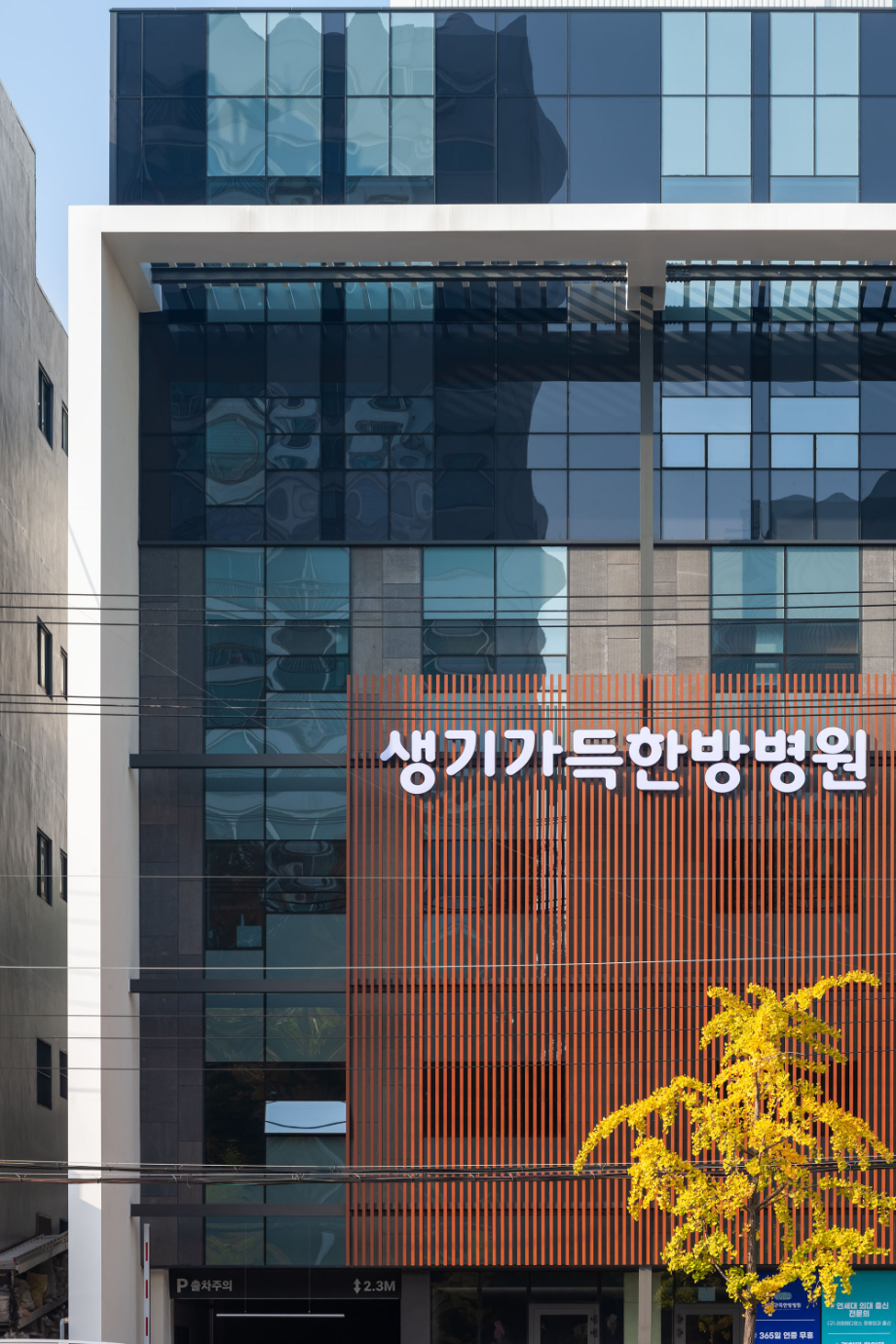 일반적인 상가 형태의 모습을 과감하게 탈피하고자 했다. 이를 위하여 전면에 그리드를 이용한 2중 구조의 철골 구조물과 목재 그릴을 계획하였다. 이는 도로 측에 배치된 병실의 프라이버시를 확보하는 역할을 하기도 한다. 유리와 돌을 적절히 사용하여 2단으로 디자인하고, 간판 설치를 위한 가벽을 설치하고 있다.