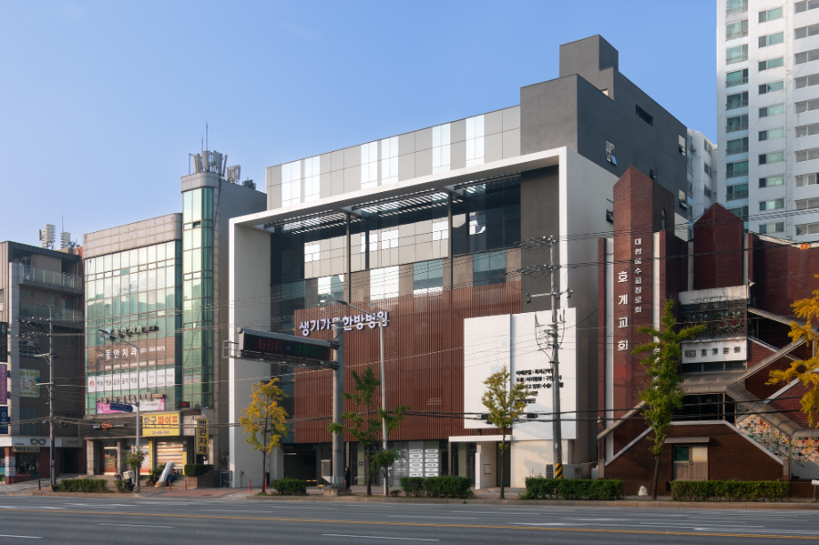 안양의 경수대로 왕복 10차로 도로변에 위치한다. 이 도로 주변은 대부분 1970~80년대 지어진 허름한 건물들로 이루어져 있다. 이런 이유로 주변 건물들과는 다른, 새롭고 참신한 형태와 재료를 사용하여 새로운 밝은 도시경관을 만들고자 했다.