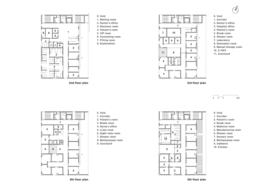 반듯한 직사각형 평면을 기본으로 하지만, 코어 부분은 일부 매스에서 돌출된 형태이다. 돌출된 매스는 건물로 진입하는 사람들에게 입구 위치를 알려주는 작용을 하기도 한다. 3층부터는 건물의 중앙부에 남측으로 오픈 공간을 만들어서 보이드 공간과 테라스가 층별로 위치하여 복도에 자연광이 도달한다.