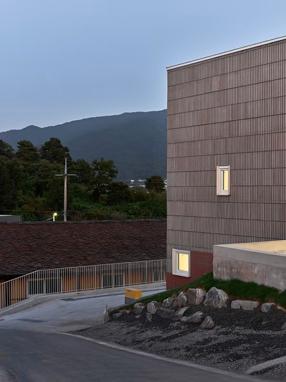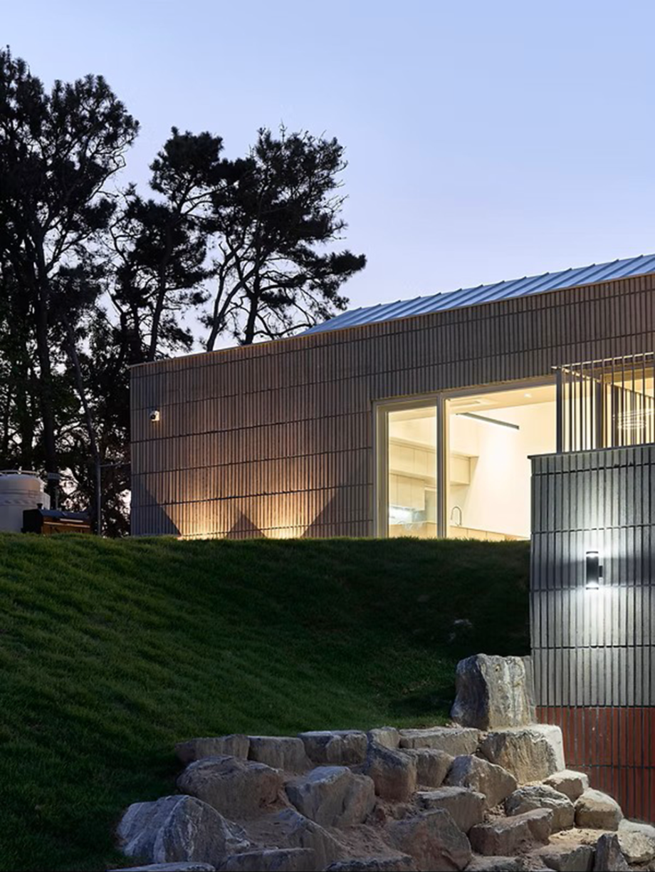 깊은 곳과 얕은 곳이 따로 없고 위층과 아래층이 따로 없는 집이 되기를 바랐습니다. 도로에서 보듯 밀실하고 견고하되 마당에서 보듯 어디서든 바깥과 닿는 집이 전원의 집이라고 생각합니다. 경사를 따라 놓인 건물로 어느 정도는 그렇게 된 것 같습니다. 건축주 부부의 은퇴 후의 여정이 동촌댁을 타고 따뜻하게 이어지기 바랍니다.◼︎