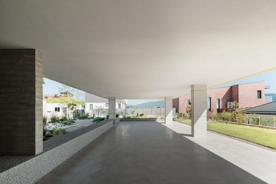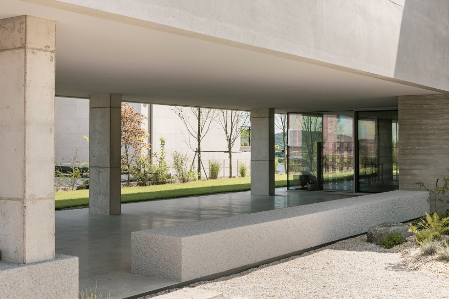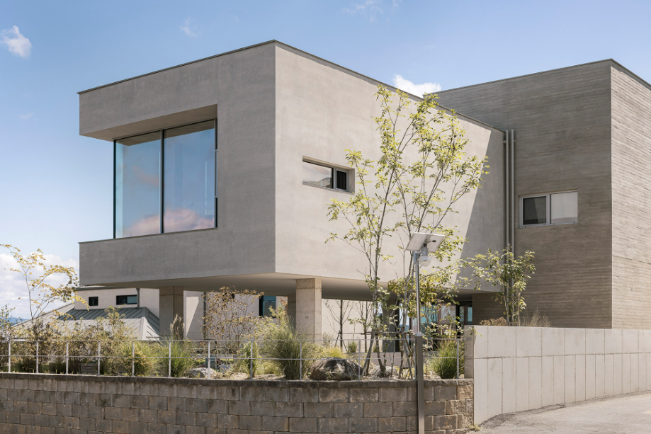 남한강이라는 거대한 흐름 옆에서 화려한 형태나 외장재 대신 투박한 재료로 정갈한 형태를 다듬어 나갔다. 외장재인 노출콘크리트는 차가운 재료이지만 나뭇결의 따뜻함을 느낄 수 있도록 거푸집에 나무판을 덧대어 송판무늬가 새겨지도록 타설했다.