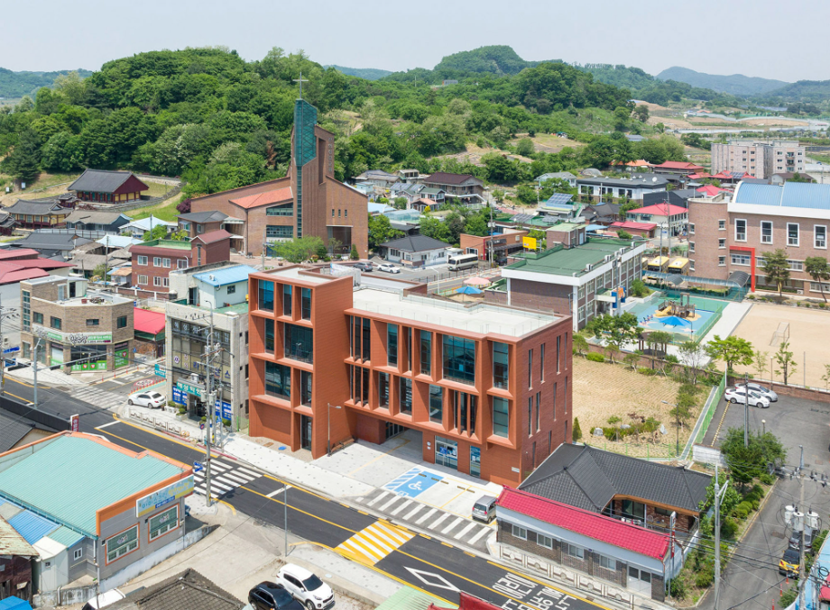 세종시 전의면 중심에 자리한 전의 청소년 문화센터는 ‘작은 숲’처럼 열려 있는 도시의 쉼터이자, 사람과 시간, 빛이 머무는 문화의 장소로 설계되었다. 오래된 건축들과 학교, 교회, 시장이 얽힌 이 지역에서 건축은 과거의 기억을 지우지 않고, 그 위에 새로운 리듬을 쌓아 올린다.