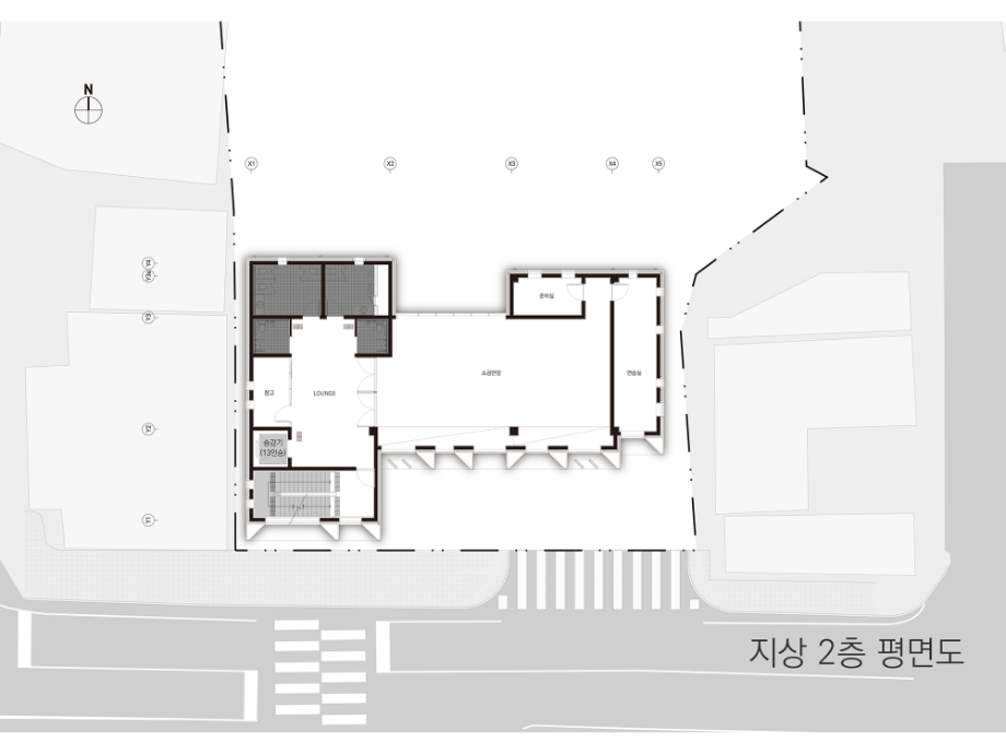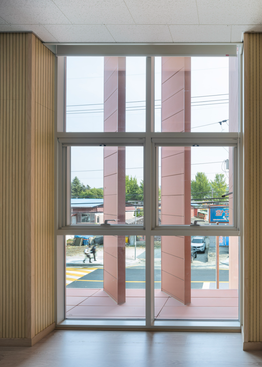 내부 공간은 단순한 기능의 합이 아니라, 사람들이 오가며 자연스럽게 마주치는 열린 구조로 계획되었다. 유리 벽면을 통해 들어오는 자연광은 공간의 밝기를 일정하게 유지하며, 거리와 마을, 그리고 사람의 움직임을 내부의 장면으로 끌어들인다.◼︎