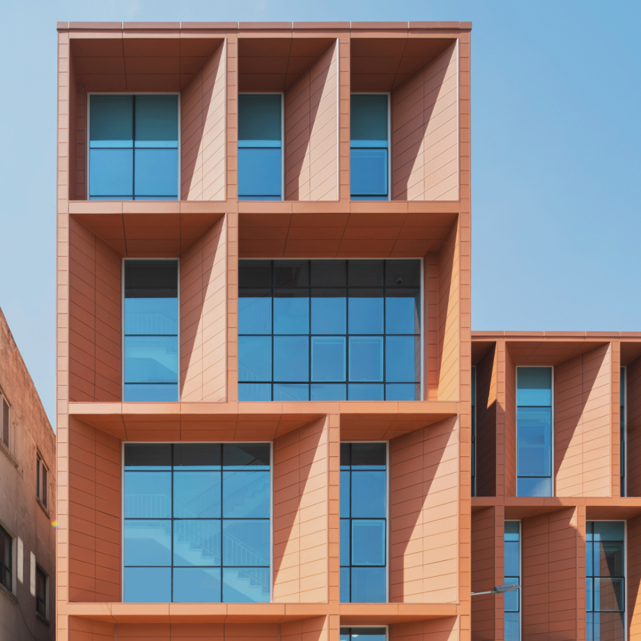 외피의 깊이 있는 프레임과 입면의 그림자는 시간의 흐름과 빛의 각도에 따라 다른 표정을 만들어낸다. 아침의 빛은 따뜻한 명암으로 입면을 채우고, 오후의 빛은 깊은 음영을 남기며, 건축 전체는 하루의 리듬에 따라 숨을 쉬는 듯한 도시의 풍경이 된다.